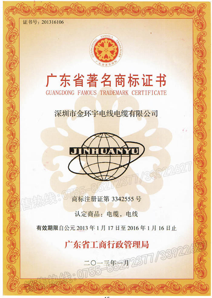 金環(huán)宇電線電纜-廣東省著名商標(biāo)
