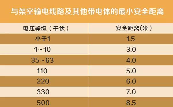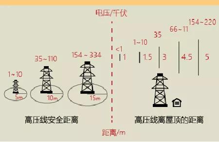 不同電壓等級(jí)的高壓帶電線路所必須保持的安全距離,當(dāng)物體進(jìn)入這些安全距離時(shí),就會(huì)引起放電。根據(jù)《電力設(shè)施保護(hù)條例實(shí)施細(xì)則》對(duì)安全距離的規(guī)定,1千伏以下高壓線的安全距離為4米;1-10千伏高壓線的安全距離為5米;35-110千伏高壓線的安全距離為10米;154-220千伏高壓線的安全距離為15米。