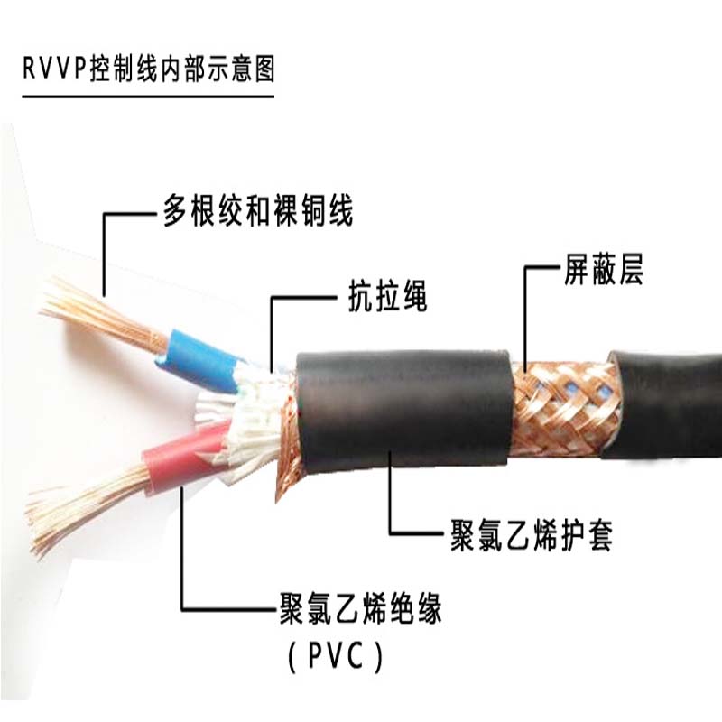 RVVP是一種軟導(dǎo)體PVC絕緣線(xiàn)外加屏蔽層和PVC護(hù)套的電纜。RVVP7*0.5平方電纜是7根0.5平方銅芯聚氯乙烯絕緣外加屏蔽和聚氯乙烯護(hù)套做成的抗干擾軟電纜。7芯編織屏蔽軟電纜。